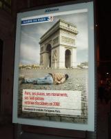עיריית פריס השיקה קמפיין נגד הקטל בדרכים, הן של נהגים, והן של רוכבים והולכי רגל. סידרת פוסטרי ענק כאילו תיירותיים מפוזרים בחוצות העיר. למרגלות המונומנטים המצולמים כמו גלויות רגילות, שוכבים הקורבנות של התאונות. הקמפיין מופיע גם בעיתונות המודפסת. אני אהוהב את הגישה החכמה של הקמפיין. נושא הזהירות בדרכים מפרנס פרסומאים וקופירייטרים באשר הם והוליד קמפיינים שונים ומשונים הכוללים זוועות אמיתיות, מונולוגים של קורבנות, ראיונות עם משפחות ההרוגים, צילומים של נכים, וכיוב. קשה למדוד את יעילותם. אך דבר אחד ברור: זה לא משפיע על הסטטיסטיקה השלילית. זה אמור לעבוד כמו אגרוף בפרצוף, אבל זה לא מספיק נוגע. לקמפיין הנוכחי יש לדעתי פוטנציאל של חדירה איטית לתודעה. הלוואי שאהיה צודק. עתיד יגיד