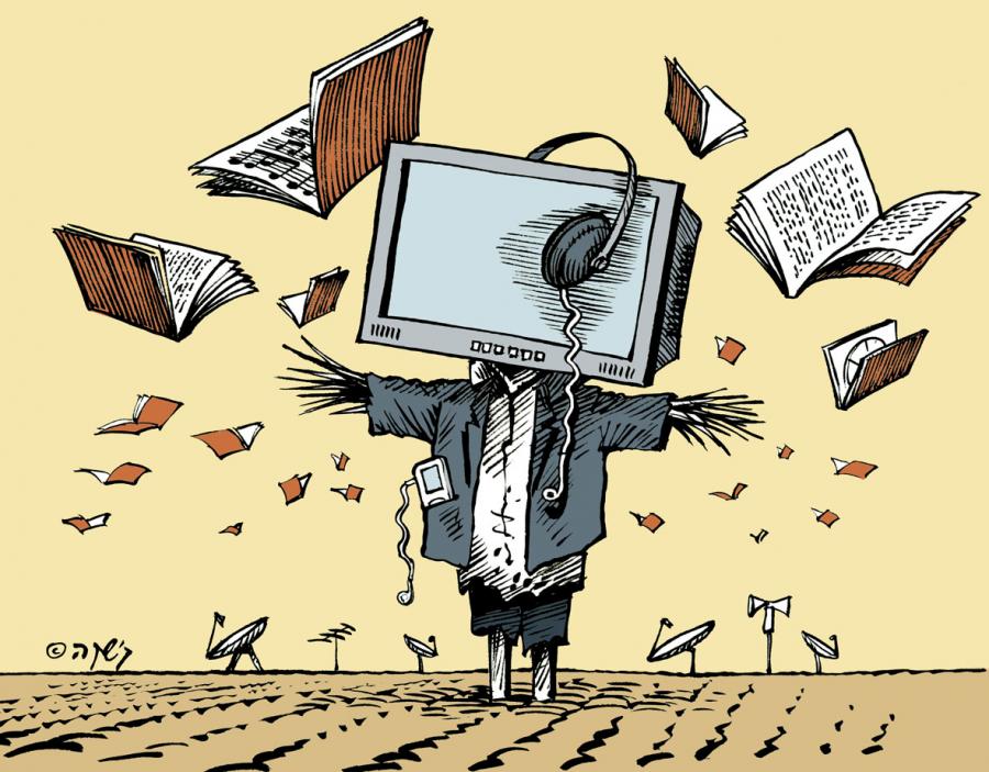 קריקטורה שצויירה עבור ההפגנה שתתקיים ביום שלישי ברחבת מוזיאון תל-אביב, בזמן שידור הגמר של האח הגדול