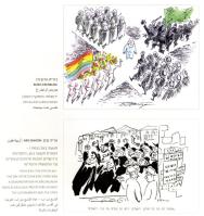ואין כמו לקט קריקטורות שנבחרו בעבודת אוצרות טובה מאוד (תודה לערן ליטוין), כדי לחדד עובדה זו. עיצוב התערוכה (תודה רנה סיוון) מרכז את כל העבודות במרכז אולם האבירים, כך שתנועת המבקרים היא מהקירות אל המרכז, ולא לאורך הקירות כנהוג. התערוכה היא פרי שיתוף הפעולה הראשון בין המוזיאון לקומיקס בחולון למגדל דוד. מברוק! במקביל לתערוכה פורסם קטלוג מצויין, עשיר בתמונות, בתוספת טקסטים טובים (אפרים סידון, ג'קי לוי,…) אך הדבר החשוב והמשמח מכל הוא שכל הטקסטים מופיעים בשלוש שפות: עברית, ערבית ואנגלית. אנו נוטים לשכוח שערבית היא אחת השפות הרשמיות של מדינת ישראל.