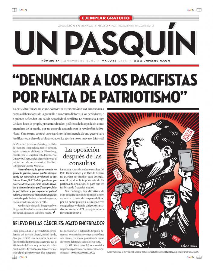 His newspaper is self edited and distributed by himself in the higher places in Bogotá. He has chosen to publish my last cartoon on the cover.![]()