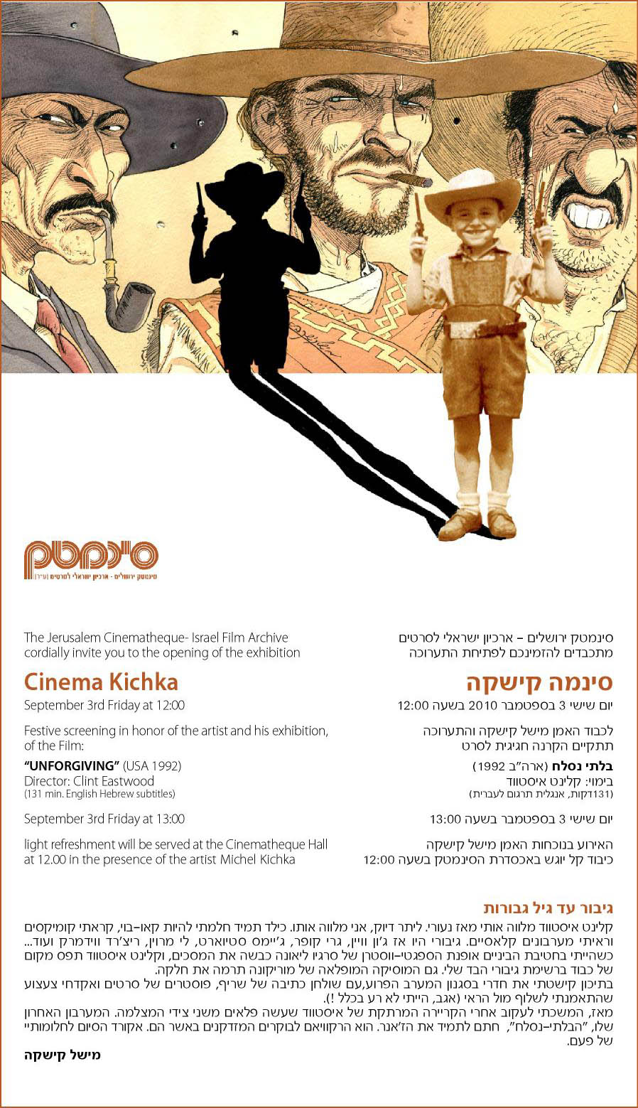לכבוד פתיחת התערוכה הוקרן המערבון בלתי נסלח של קלינט איסטווד. לכבוד יום הולדתו ה-80 שנה מוקרנים סרטיו במשך כל החודש. הוא מופיע אצלי בשלוש עבודות: הטוב, הרע והמכוער, מיליון דולר בייבי ואיוו-ג'ימה