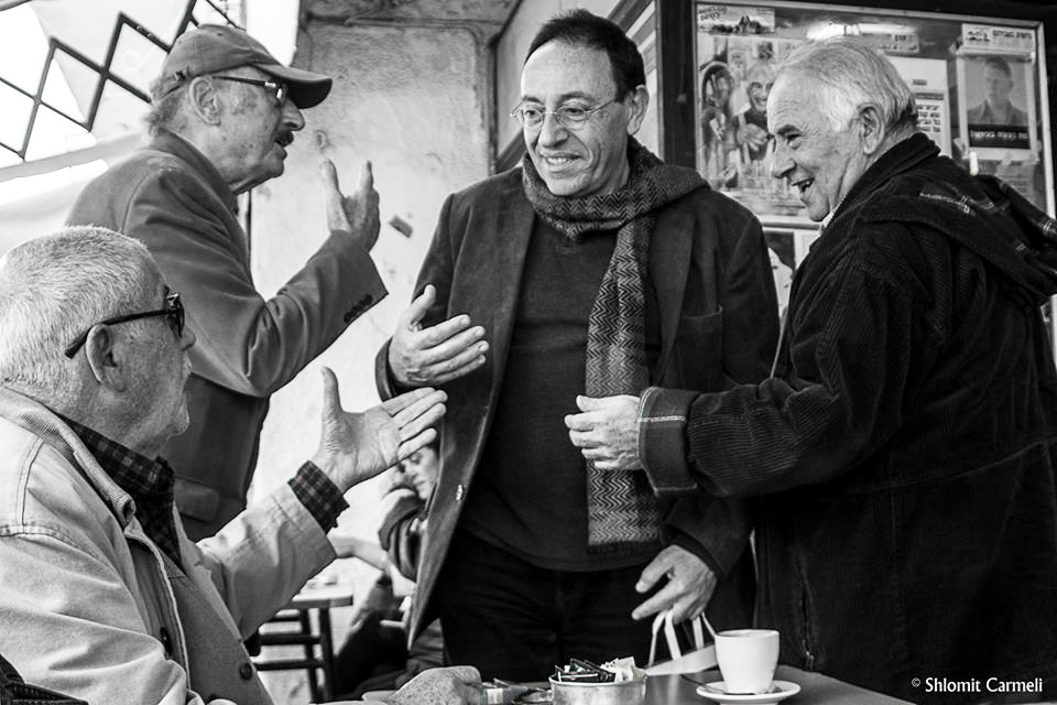 צילום של שלומית כרמלי. בפריים פרוספר בנהרוש, חיים הנגבי ואבא שלי שנהג לפקוד את המקום