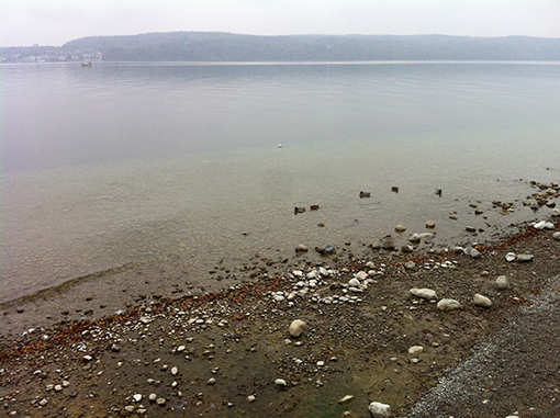 בעוד כשעה תיפתח התערוכה שלי באוברלינגן. אני משוטט לאורך אגם קונסטנס על רקע נוף פסטורלי שחושף לאיטו את פלטת הסתיו שלו. אני מתמלא ברוגע של הסביבה, בשקט של הרחובות, בנונשלנטיות של העוברים ושבים, בחוסר האכפתיות של הברווזים. אני מהלך בתוך גלויה אילמת, נהנה להשלות את עצמי שמחר, עם שובי לירושלים, זה יעבוד עלי למשך שעה או שעתיים כמו זריקת חיסון נגד המציאות האלימה. באוברלינגן בתים רבים צבועים באדום. אצלנו זה צבע המדרכה
