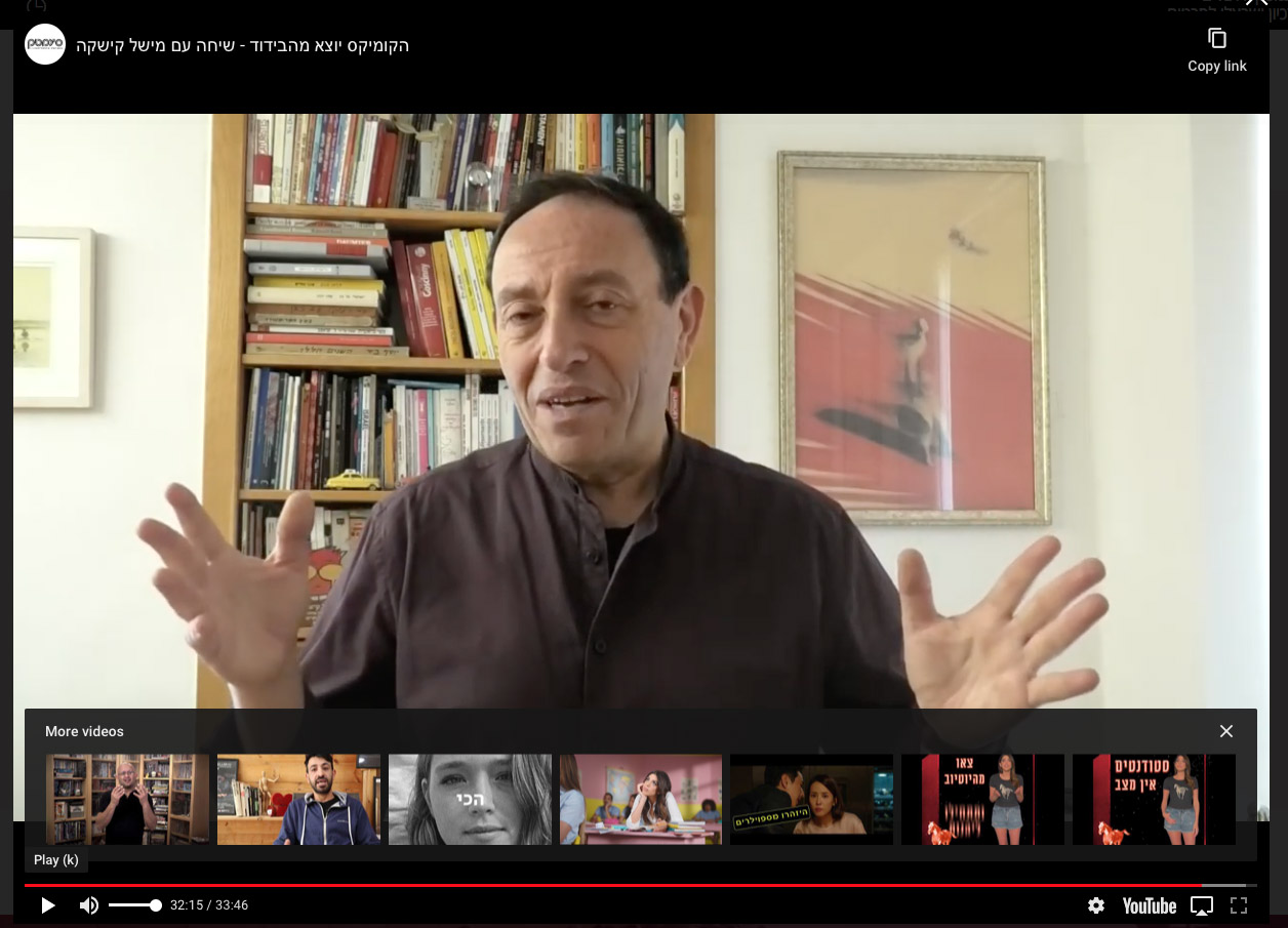 סינמטק ירושלים יצא ביוזמה מבורכת בימים אלה ופנה למרצים שונים כדי שיתנו הרצאות ביתיות בצילום עצמי, כיאה לתאי הבידוד שנכפו על כולנו, בנושאים הקשורים לקולנוע. אלון גור אריה מרצה על מי המציא את הקולנוע ואיהאב ג׳דאללה על הולדת הקולנוע. מצידי בחרתי להרצות על חמש סדרות קומיקס מהמפורסמות בעולם שבמרכזן ילדים החיים בין המציאות לדימיון בסיפורים קטנים המספרים מה קורה בבית, בחצר, בגינה או ברחוב. הרפתקאות זעירות מלאות בחן והומור וחכמה. בסוף ההרצאה אני גם מציע למי שירצה, ליצור קומיקס אישי על מה שקורה לו בבית או בראש. מופיעה על המסך כתובת למשלוח כך שהקומיקסים יגיעו אלי ואחזור אל מי ששלח עם תגובה ותודה. לא נותר לי אלא לאחל לכם חג פסח שמח
