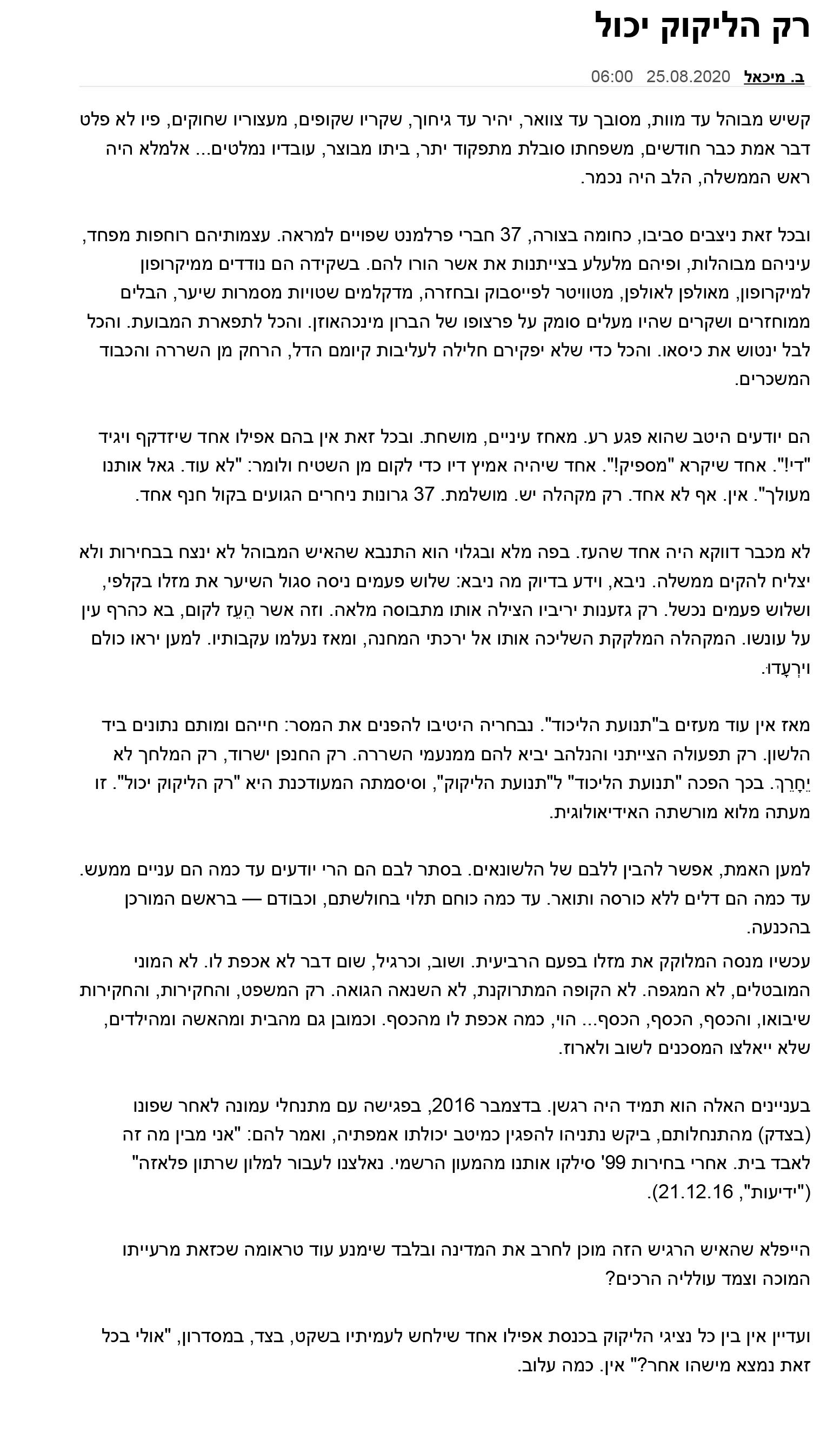 אני מפרסם כאן את מאמר הדעה המצויין של ב.מיכאל המתפרסם היום בהארץ. אני חותם על כל מילה, על כל פסיק ועל כל נקודה