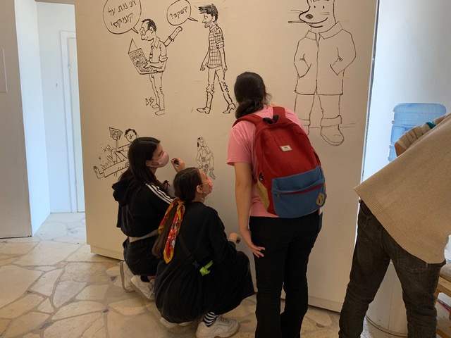ואחרי שאמרתי את מה שהיה לי לומר, כמה מילים על התערוכות במוזיאון יפו העתיקה. מתקיימות במקום המיוחד והיפה הזה שלוש תערוכות מקבילות, אחת של בוגרי בצלאל מהמחלקה לתקשורת חזותית אשר זכו בשבע השנים האחרונות בפרס קרטס לקומיקס, אחת של איורים וקריקטורות שפירסמתי בשנות ה-80 וה-90 תחת הכותרת ״איורים לפני מגפת הפוליטיקלי קורקט״ ותערוכה של שלוש אמניות מאיירות/ציירות מוכשרות