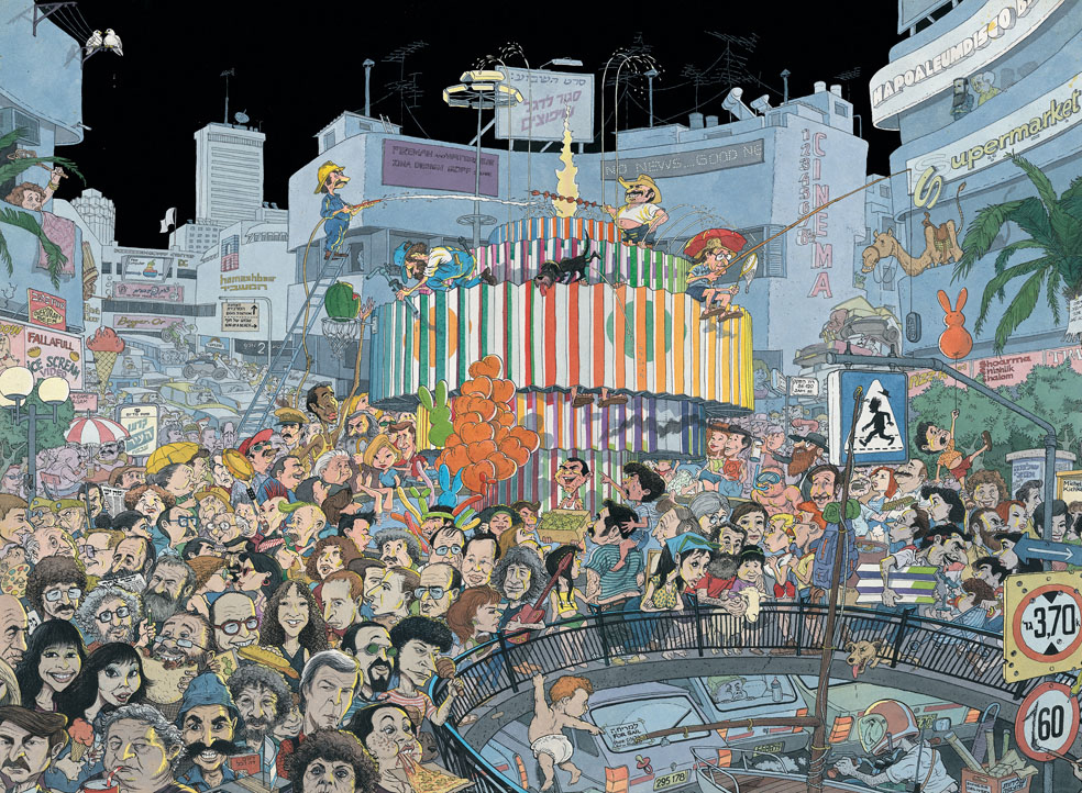 פעם ראשונה בפוסטר ״כיכר דיזנגוף״, בפינה השמאלית התחתונה (מיקום יפה. תודו!) ושותה מפחית קולה. הפוסטר יצא בהוצאת פלפוט ב-1987 וטומרקין נתן את הסכמתו שאצייר אותו בין האמנים הרבים שמופיעים שם
