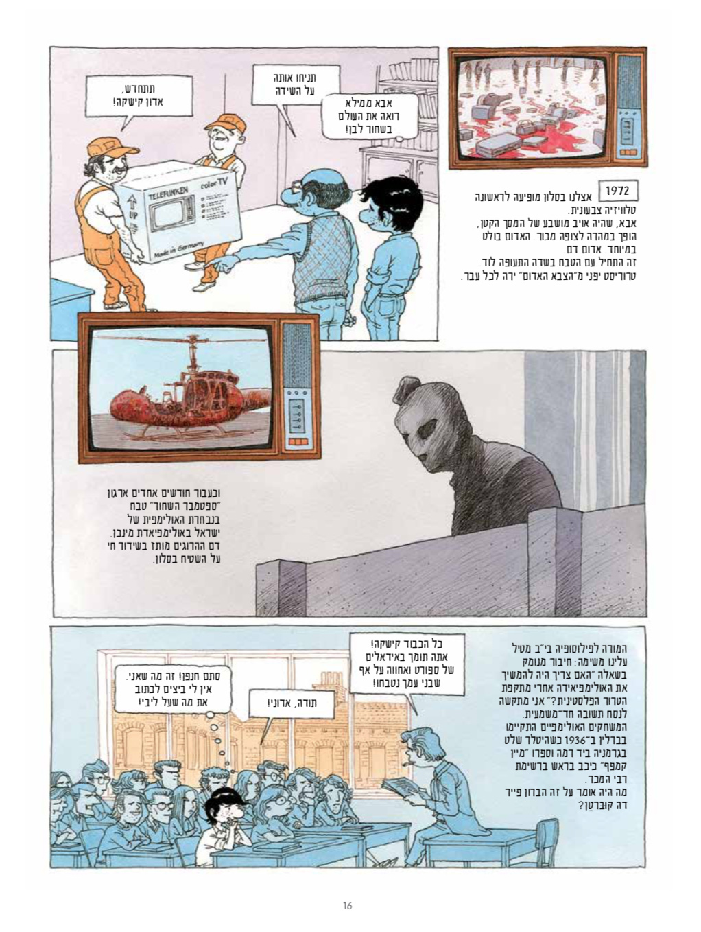 כשבוצע הטבח ב-11 הספורטאים הישראלים באולימפיידת מינכן, הייתי תלמיד י״ב בבלגיה. אבינו בידוק רכש טלוויזיה צבעונית טלפונקן מתוצרת גרמניה וצפינו בשידור ישיר במתרחש בכפר האולימפי. את האירוע הזה סיפרתי ב״פלאפל עם חריף״ שיצא בעברית בהוצאת מודן ב-2019