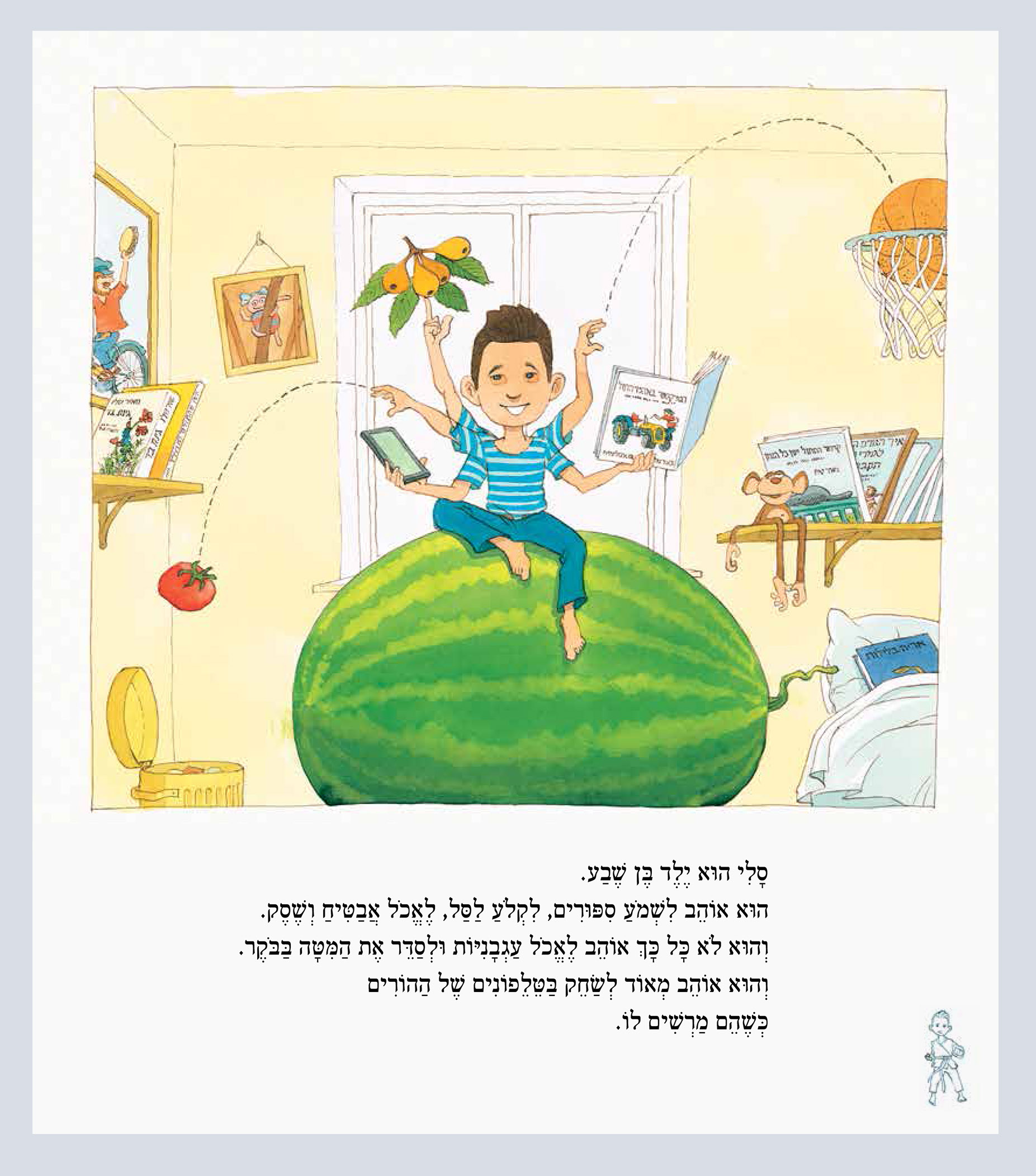 ספר הילדים האחרון של מאיר שלו כבר הופץ וזה רגע משמח ועצוב כאחד. משמח כי כל ספר שלו הוא חגיגה. עצוב כי הוא נקטף באיבו וחסר לנו כל כך. היה לי הכבוד והעונג לאייר את ״נכד קרטה וסבא סנוקרת״. מאיר הספיק לאשר לי את כל הסקיצות אך הלך לפני שהתחלתי לעבוד על האיורים הסופיים. למעשה איירתי אותו אחרי מותו. לכן עשיתי שינויים על דעת עצמי באיור הפותח, שינויים שלא ראה ולא יראה. סביב סלי, הנכד היושב על אבטיח ענק, על מדפים ועל הקירות, פיזרתי ספרים ועטיפות של ספרים של מאיר, ספרים שנכנסו לקלאסיקות ונמצאים בכמעט כל בית, כל מעון ילדים, כל גן ילדים, כל ספריה בית סיפרית או עירונית