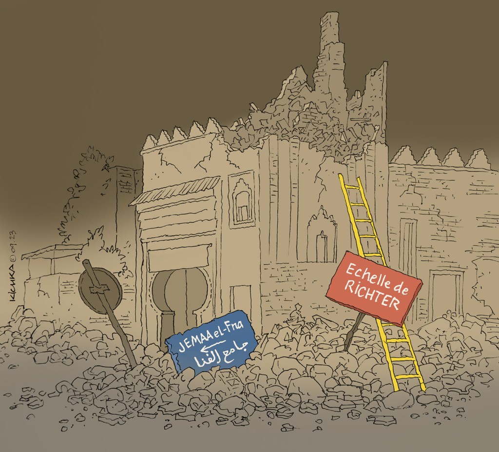 אסון טבע הופך מיד לאסון הומניטארי ולבי יוצא אל כל אלה שנפגעו בגוף, ברכוש ובנפש. לא קריקטורה אלא איור מחווה