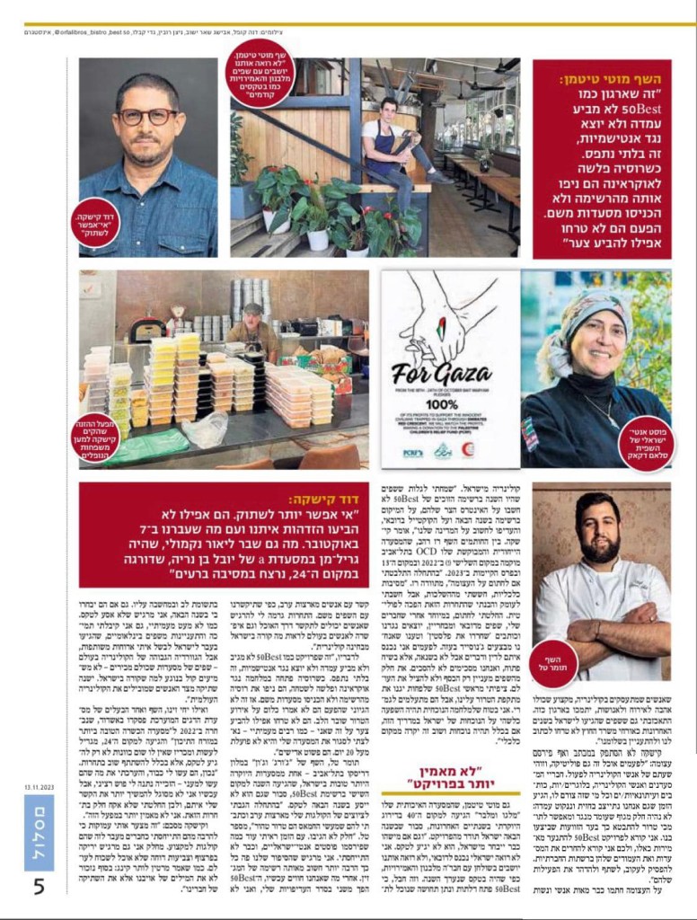 כתבה של אמיר קמינר על עולם הקולינריה ועמדות פוליטיות, על הפער שבין העונג של הבישול ועינוגי השולחן לבין תמיכה בטרור, על קולינריה כסוכן של קירוב ללבות מול חוסר אמפתיה