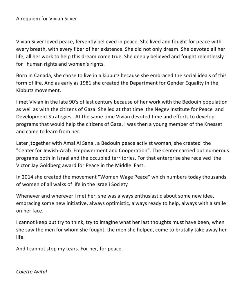 קולט אביטל כתבה לה רקוויאם שאני מפרסם כאן
