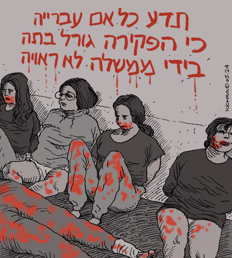 ידידים וחברים כתבו לי על הקריקטורה הזו בווטסאפ: מצמרר, נורא, קשה מאוד, חזק מאוד, מזעזע, ועוד. כל התארים האלה צריכים להיות מופנים לממשלה ולעומד בראשה ולשרים הרבים שסירבו לצפות בסרטון. אני צורח לעברם ״בושה״. מאתיים שלושים פעם