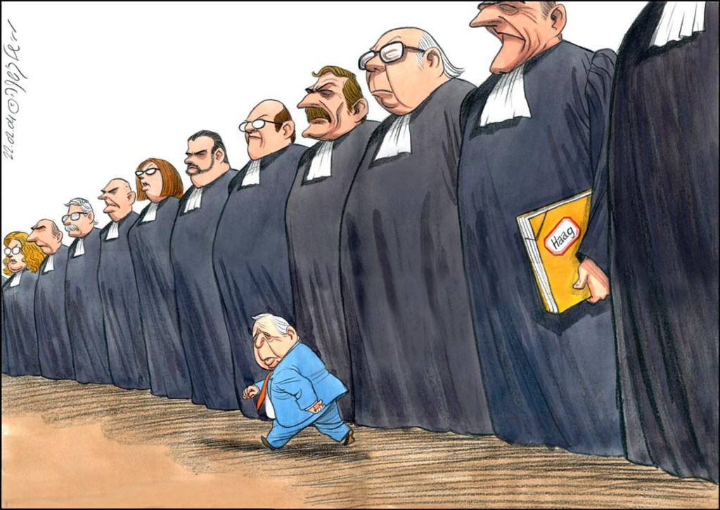 את הקריקטורה ציירתי בפברואר 2004 כשאריק שרון סירב להופיע בהאג בקשר לבניית חומת ההפרדה והיא נראית לי כל כך רלוונטית גם היום שהחלטתי להשתמש בה שנית