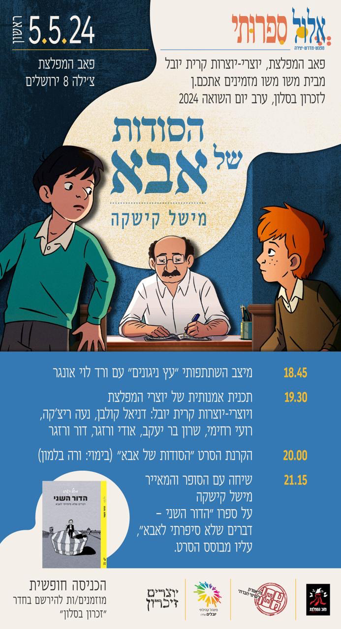 ״אלול ספרותי״ מארגן הקרנה של הסרט ״הסודות של אבא״ באירועי זכרון בסלון בערב יום השואה. אשוחח עם הקהל בתום ההקרנה