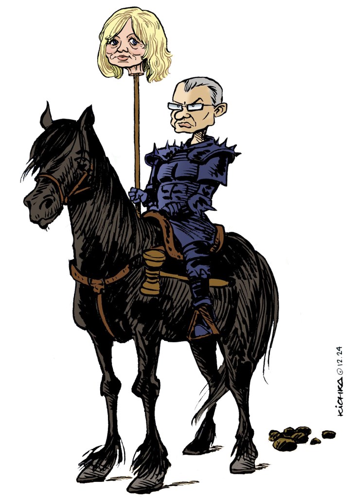 מחנה הימין רוצה את ראשה של גלי בהרב-מיארה שמפריעה להם לממש את חלומותיהם הרטובים : שליטה אבסולוטית של הממשלה על חיינו, על רשויות החוק שלנו, על חוקינו, על תקציבנו, על חופש הביטוי שלנו, והכי חשוב על ביטול משפטו של הקיסר מקיסריה. יריב לוין, מאחורי מסככה של פקיד אפור, הוא שליחו המסוכן של פטרונו. כל מי שהדמוקרטיה חשובה לו חייב להתייצב לימינה של שומרת הסף של כולנו
