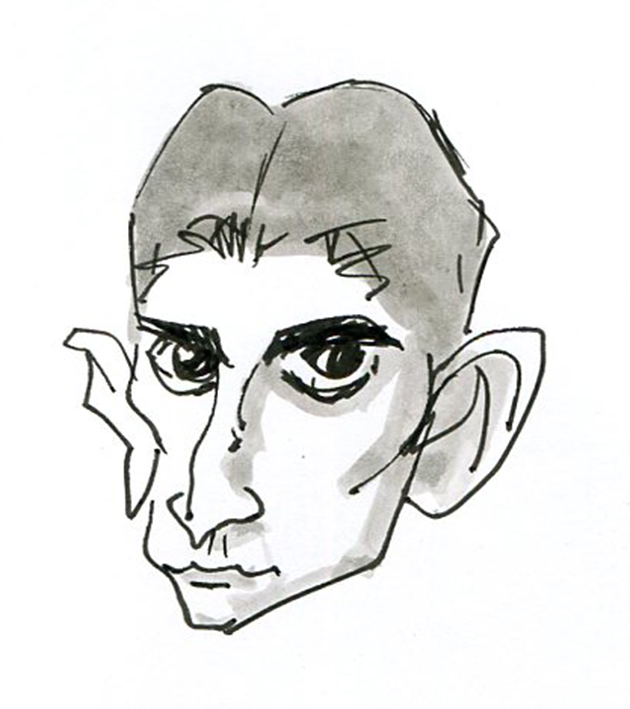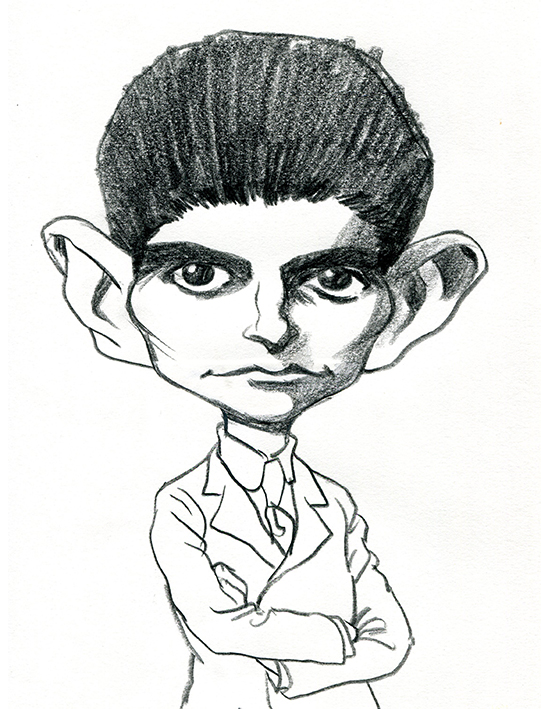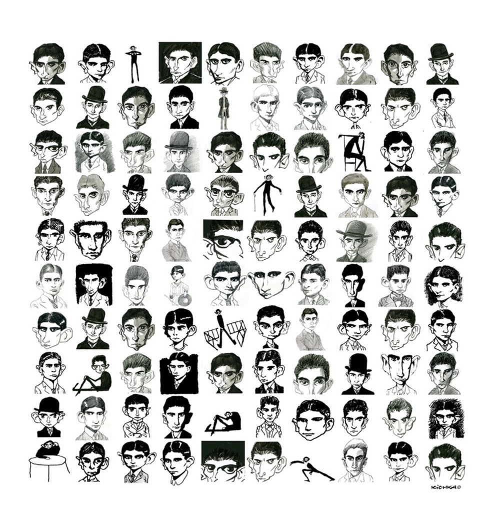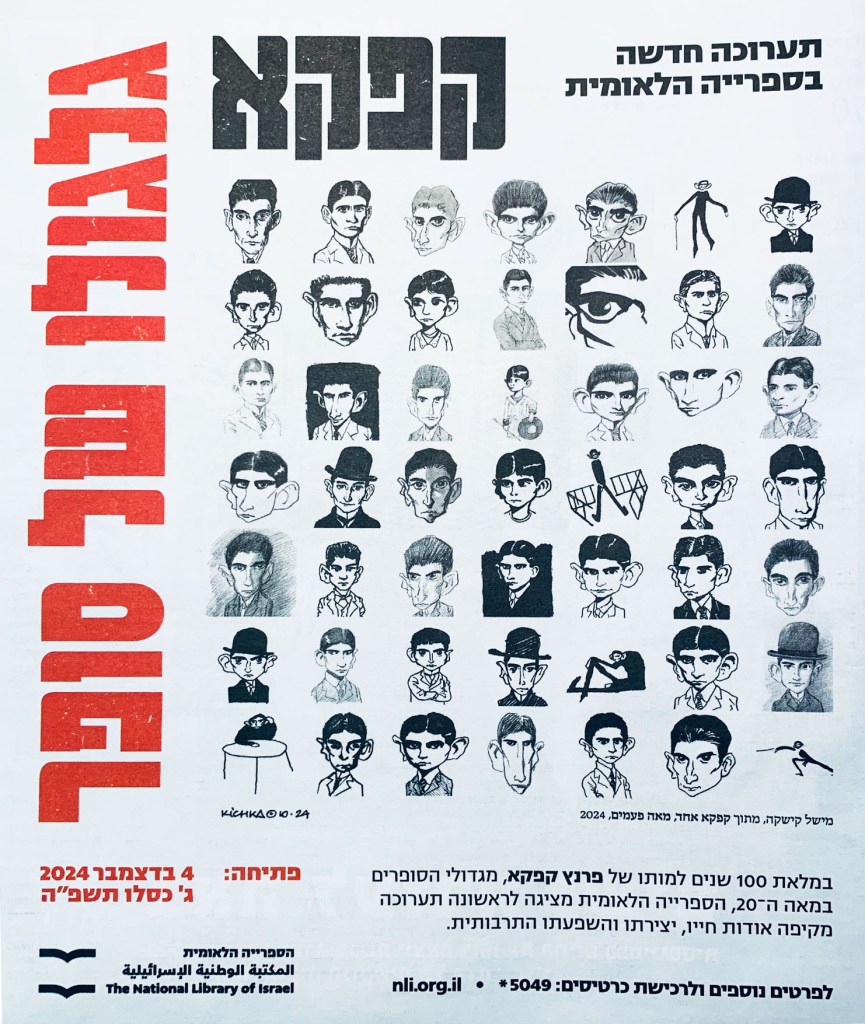 מחרתיים תיפתח לקהל הרחב תערוכה לרגל מאה שנה לפטירתו של קפקא. בתערוכה מוצגים פריטים נדירים מעזבונו השייכים לאוסף הספריה לצד סיפור חייו. הספריה הזמינה יצירה מיוחדת משמונה מאיירות ומאיירים. החלטתי לצייר מאה פורטרטים של קפקא מבוססים על מעט הצילומים המוכרים שלו, צילומי שחור לבן שהפכו לייקון תרבות בעולם המערבי כולו. במשך תקופה של שלושה חודשים ציירתי את מאה הפורטרטים בטכניקות קלאסיות כגון עיפרון, ציפורן ומכחול, כולם בשחור לבן, כל אחד בפורמט איי 4, ללא סקיצה, ללא מחיקה, הכי ספונטני שיכולתי. בסוף התהליך עיצבתי פוסטר של מטר על מטר עם כל הקפקאים ושילבתי ביניהם רישומים שקפקא צייר במחברותיו
