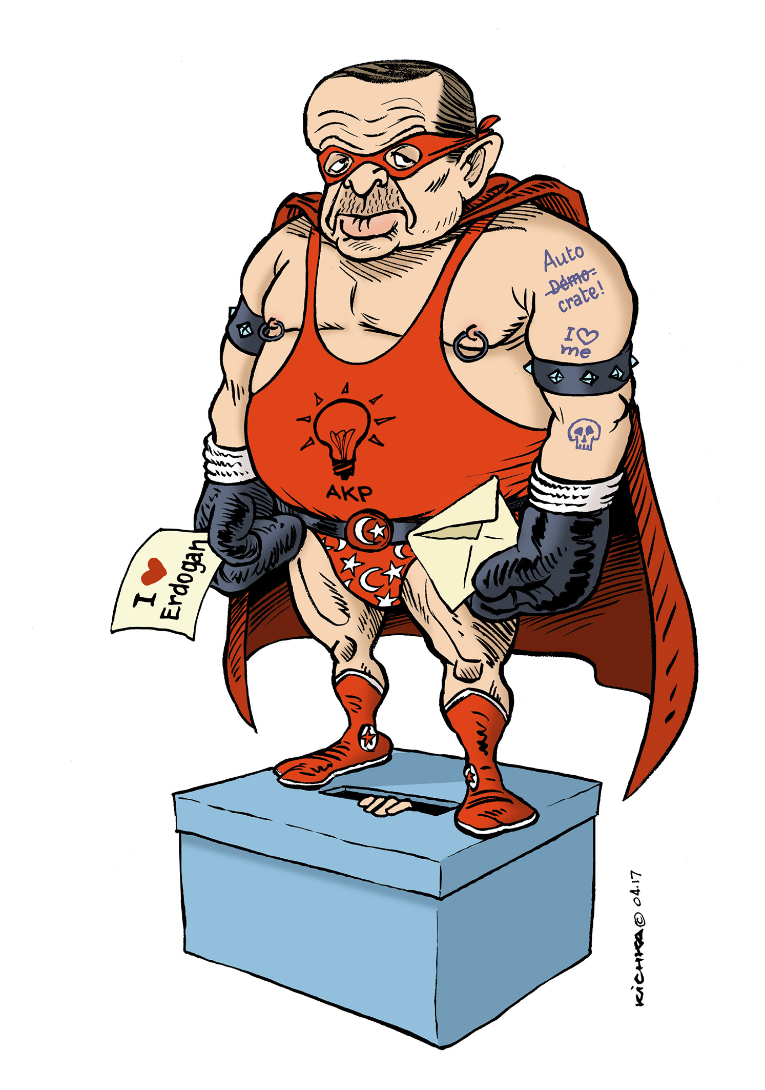 המגזין הסאטירי הטורקי לה מאן חוגג 25 שנה. מגזין אמיץ ומקביל לשארלי הבדו שמצליח לשרוד בסערה המטורפת שמחולל ארדואן. ציירתי להם קריקטורה במתנה. אבל ככל שאני מתאמץ להפוך את ארדואן לקריקטורה, אני בקושי מגיע לקרסוליים שלו כשהוא מצייר את ארצו כקריקטורה עלובה של דמוקרטיה וכשהוא מכנה את גרמניה של מרקל ואת הולנד כמשטרים נאציים
