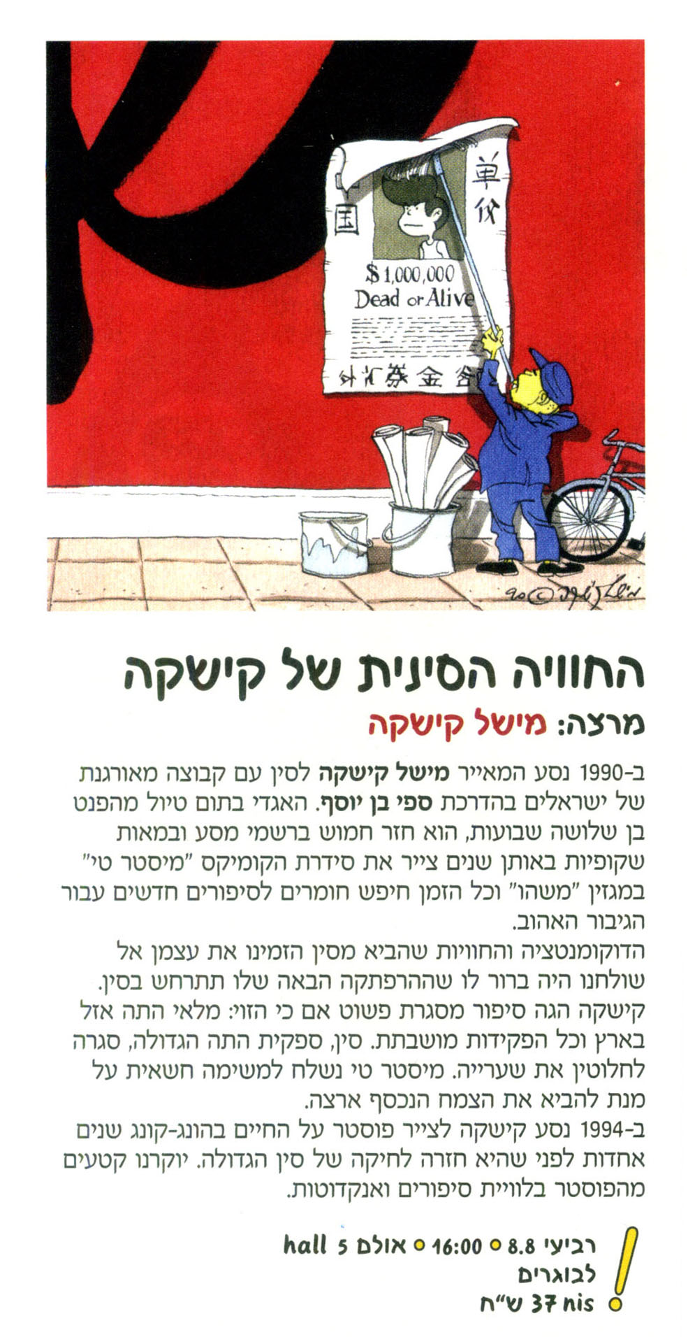 ב-8 באוגוסט אתן הרצאה עם מצגת עשירה על קומיקס ועל פוסטר שיצרתי בעקבות שתי נסיעות לסין